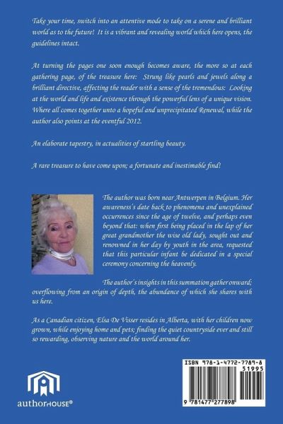 Take your time, switch into an attentive mode to take on a serene and brilliant world: a world as to the future! It is a vibrant and revealing world which here opens. The guidelines intact. At turning the pages one soon enough becomes aware the more so at each gathering page, of the treasure here: Strung like pearls and jewels along a brilliant directive, affecting the reader with a sense of the tremendous: Looking at the world and life and existence through the powerful lens of a unique vision. Where all comes together unto a hopeful and unprecipitated Renewal, while the author also points at the eventful 2012. An elaborate tapestry, in actualities of startling beauty. A rare treasure to have come upon: a fortunate and inestimable find!