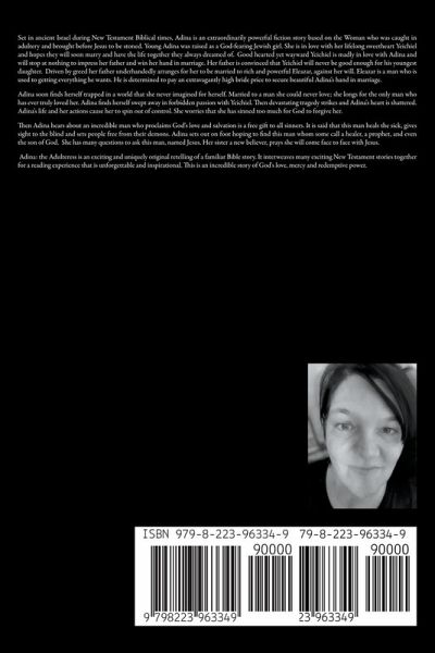 Set in ancient Israel during New Testament Biblical times, Adina is an extraordinarily powerful fiction story based on the Woman who was caught in adultery and brought before Jesus to be stoned. Young Adina was raised as a God-fearing Jewish girl. She is in love with her lifelong sweetheart Yeichiel and hopes they will soon marry and have the life together they always dreamed of. Good hearted yet wayward Yeichiel is madly in love with Adina and will stop at nothing to impress her father and win her hand in marriage. Her father is convinced that Yeichiel will never be good enough for his youngest daughter. Driven by greed her father underhandedly arranges for her to be married to rich and powerful Eleazar, against her will. Eleazar is a man who is used to getting everything he wants. He is determined to pay an extravagantly high bride price to secure beautiful Adina's hand in marriage. Adina soon finds herself trapped in a world that she never imagined for herself. Married to a man she could never love; she longs for the only man who has ever truly loved her. Adina finds herself swept away in forbidden passion with Yeichiel. Then devastating tragedy strikes and Adina's heart is shattered. Adina's life and her actions cause her to spin out of control. She worries that she has sinned too much for God to forgive her. Then Adina hears about an incredible man who proclaims God's love and salvation is a free gift to all sinners. It is said that this man heals the sick, gives sight to the blind and sets people free from their demons. Adina sets out on foot hoping to find this man whom some call a healer, a prophet, and even the son of God. She has many questions to ask this man, named Jesus. Her sister a new believer, prays she will come face to face with Jesus. Adina: the Adulteress is an exciting and uniquely original retelling of a familiar Bible story. It interweaves many exciting New Testament stories together for a reading experience that is unforgettable and inspirational. This is an incredible story of God's love, mercy and redemptive power.