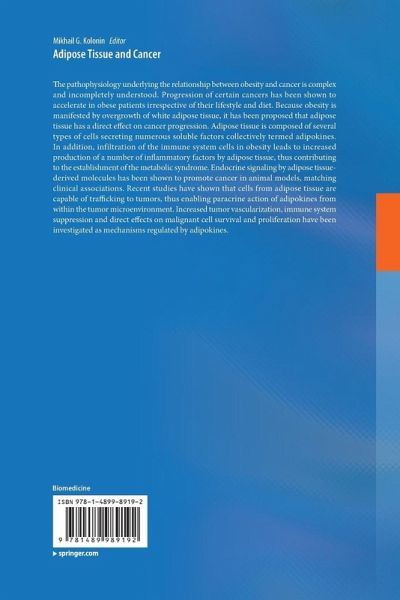 Preface: Obesity, Adipose Tissue and Cancer Progression.- Metabolic Perturbations Associated with Adipose Tissue Dysfunction and the Obesity-Cancer Link.- Increased Adiposity and Colorectal Cancer.- Adiposity and Diabetes in Breast and Prostate Cancer.- Increased Adipocity and Endometrial Cancer Risk.- Adipokines: Soluble Factors from Adipose Tissue Implicated in Cancer.- Animal Models to Study the Interplay between Cancer and Obesity.- Unraveling the local influence of tumor-surrounding adipose tissue on tumor progression: cellular and molecular actors involved.- Trafficking of Cells from Adipose Tissue to Tumor Microenvironment.- The Impact of Obesity Intervention on Cancer: Clinical Perspectives.- Index.
