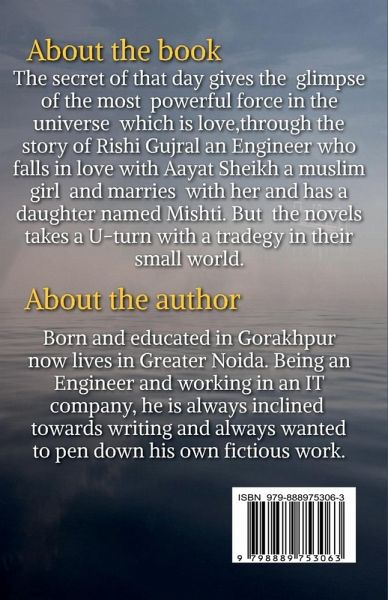The secret of that day gives the glimpse of the most powerful force in the universe which is love, through the story of Rishi Gujral an Engineer who falls in love with Aayat Sheikh a muslim girl and marries with her and has a daughter named Mishti. But the novels takes a U-turn with a tradegy in their small world.