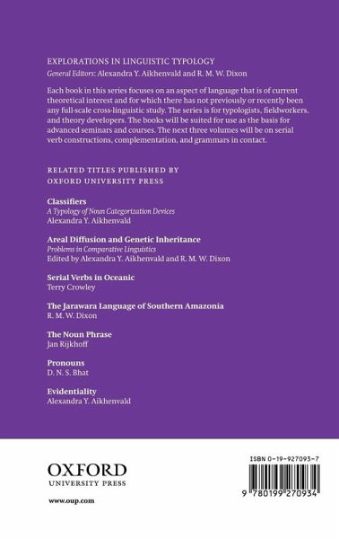 Each book in this series focuses on an aspect of language that is of current theoretical interest and for which there has not previously or recently been any full-scale cross-linguistic study. The series is for typologists, fieldworkers, and theory developers at graduate level and above. The books will be suited for use as the basis for advanced seminars and courses. The subjects of next three volumes will be serial verb constructions, complementation, and grammars in contact.