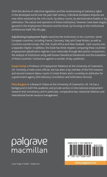 Adjudicating Employment Rights compares and analyses institutions for resolving employment rights disputes in ten countries. In addition to detailed individual chapters, the study offers a theoretical perspective and an evaluation of national institutions against key yardsticks.