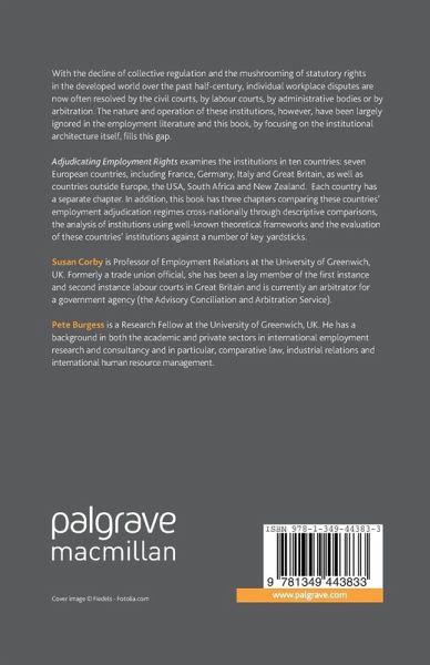Adjudicating Employment Rights compares and analyses institutions for resolving employment rights disputes in ten countries. In addition to detailed individual chapters, the study offers a theoretical perspective and an evaluation of national institutions against key yardsticks.