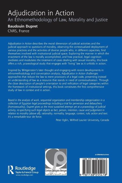 A rich, praxeological study that engages with 'living law' as it unfolds in context and in action to develop a fuller understanding of what law is, Adjudication in Action engages with Wittgenstein's later thought along with recent developments in ethnomethodology and conversation analysis, to explore people's orientation around and reification of legal categories within the framework of institutional settings.