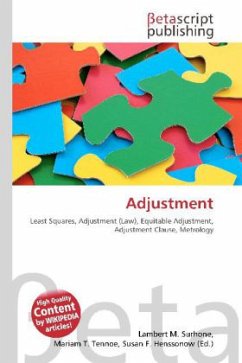 Please note that the content of this book primarily consists of articles available from Wikipedia or other free sources online. Adjustment (from late Latin ad-juxtare, derived from juxta, near, but early confounded with a supposed derivation from Justus, right) means regulating, adapting or settling in a variety of contexts:In psychology, adjustment means the behavioural process of balancing conflicting needs, or needs against obstacles in the environment. Humans and animals regularly do this, for example, when they are stimulated by their physiological state to seek food, they eat (if possible) to reduce their hunger and thus adjust to the hunger stimulus. Adjustment disorder occurs when there is an inability to make a normal adjustment to some need or stress in the environment.