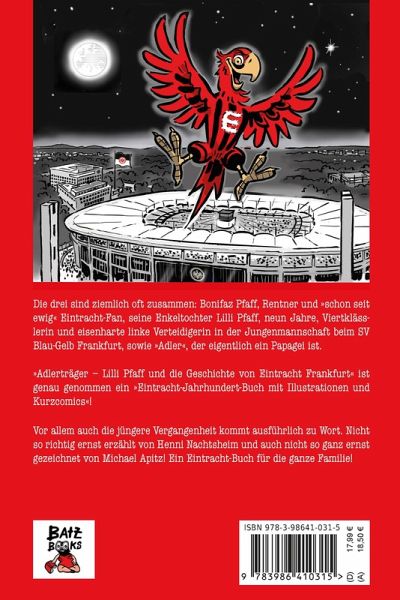 "Adlerträger - Lilli Pfaff und die Geschichte von Eintracht Frankfurt" - Eine spannende Fußballreise für Groß und Klein! Die neunjährige Lilli Pfaff liebt Fußball - und ganz besonders Eintracht Frankfurt! Doch als ihr Großvater Bonifaz ihr die Geschichte des Vereins erzählt, beginnt für sie eine abenteuerliche Reise durch die Vergangenheit. Begleitet von ihrem sprechenden Papagei "Adler" taucht sie tief in die faszinierende Welt eines der traditionsreichsten Fußballvereine Deutschlands ein. ¿ Was erwartet dich in diesem Buch? ¿ Eine spannende Zeitreise durch die Geschichte von Eintracht Frankfurt ¿ Fußballwissen spielerisch erzählt - ideal für junge Fans und Familien ¿ Humorvolle und mitreißende Geschichten voller Leidenschaft für den Sport ¿ Perfektes Geschenk für kleine und große Eintracht-Fans! Für junge Fußballfans, sportbegeisterte Familien und alle, die Eintracht Frankfurt lieben, ist "Adlerträger" ein absolutes Muss! Jetzt lesen und in die magische Fußballwelt eintauchen!