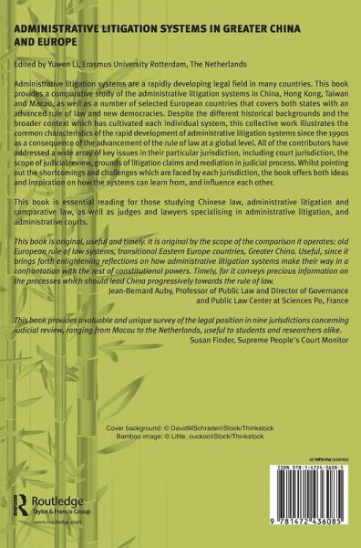 This book provides a comparative study of the administrative litigation systems in China, Hong Kong, Taiwan and Macao, as well as in a number of selected European countries including both states with an advanced rule of law and new democracies. The collective work illustrates the common characteristics of the rapid development of administrative litigation systems and whilst pointing out the shortcomings and challenges faced by each jurisdiction, the book offers both ideas and inspiration on how the systems can learn from and influence each other.