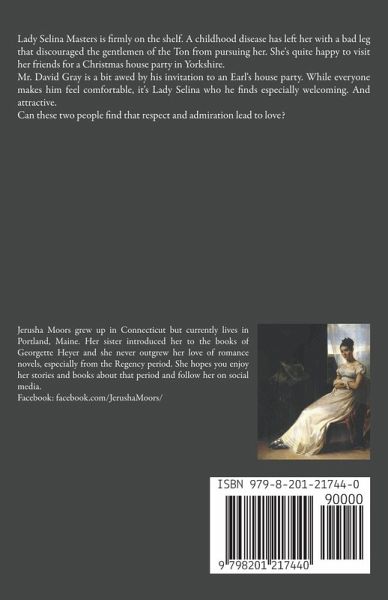 Lady Selina Masters is firmly on the shelf. A childhood disease has left her with a bad leg that discouraged the gentlemen of the Ton from pursuing her. She's quite happy to visit her friends for a Christmas house party in Yorkshire. Mr. David Gray is a bit awed by his invitation to an Earl's house party. While everyone makes him feel comfortable, it's Lady Selina who he finds especially welcoming. And attractive. Can these two people find that respect and admiration lead to love?