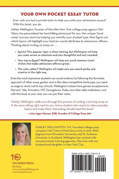 Founder of elite college prep agency Mint Tutors, Ashley Wellington shares hard-hitting essay-writing advice tailored to each student's strengths and potential pitfalls, inspiring students to write as if guided by their own personal college admissions tutor. Your Own Pocket Essay Tutor Ever wish you had a private tutor to help you write your admissions essays? With this book, you do. Ashley Wellington, founder of the elite New York college prep agency Mint Tutors, has personalized her hard-hitting advice just for you. Her unique "boot camp" process starts by helping you identify your student type, then figure out which topics will highlight your best (or worst) attributes to admissions officers. Thinking about writing an essay on . . . • Sports? This popular topic is often limiting, but Wellington will help you come across as talented-and also thoughtful and well rounded. • Your trip to Egypt? Wellington will help you avoid common travel clichés that make admissions officers groan. • The color yellow? Wellington will make sure you sound quirky and creative in the right way. Even the most impressive students can sound ordinary by following the formulaic approach of other essay guides-and in this über-competitive landscape, you need an edge to stand out to top schools. Wellington's tutees have gained acceptance to Harvard, Yale, Princeton, MIT, Georgetown, Duke, and other elite institutions, and with this book at your side, you can join their ranks.
