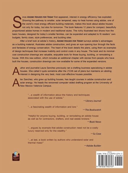 Since Adobe Houses for Today first appeared, interest in energy efficiency has exploded. Showing the pathway to smaller, solar tempered, easy-to-heat homes using adobe, one of the world's most energy efficient building materials, makes this book about adobe houses not only for today, but also for tomorrow. The book features 12 plans for compact, beautifully proportioned adobe homes in modern and traditional styles. The richly illustrated text shows how the basic houses, designed for today's smaller families, can be expanded and adapted to fit readers' own budgets, family sizes, style preferences, and building sites. After a brief look at adobe's history, Adobe Houses for Today surveys adobe's advantages as a building material, illustrates adobe construction, and gives an eye-opening tour through the facts and fantasies of energy conservation. The heart of the book details the plans, using them as examples of design techniques that increase livability and control costs in any house. The book and its minimal-cost construction drawings are valuable, enjoyable tools for those buying, building, or remodeling a house. With this new edition, which includes an additional chapter with stories from people who have built the houses, construction drawings are now available for some of the expanded versions.