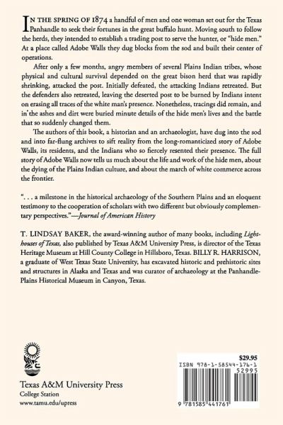 In the spring of 1874 a handful of men and one woman set out for the Texas Panhandle to seek their fortunes in the great buffalo hunt. They intended to establish a trading post to serve the hunters, or "hide men, " and at a place called Adobe Walls they dug blocks from the sod and built their center of operations. After only a few months, angry members of several Plains Indian tribes, whose survival depended on the rapidly shrinking bison herd, attacked the post. Initially defeated, the attacking Indians retreated. But the defenders also retreated, and intent on erasing all traces of the white man's presence, the Indians burned the deserted post. Nonetheless, tracings did remain, and in the ashes were buried minute details of the hide men's lives. Adobe Walls tells us much about the dying of the Plains Indian culture and the march of white commerce across the frontier.