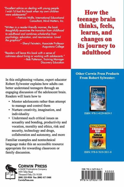"Excellent advice on dealing with young people. I wish I'd had this book when my own children were adolescents!" -Patricia Wolfe, International Educational Consultant, Mind Matters, Inc. "Written in a reader-friendly manner, the book thoughtfully examines the transition period from childhood to adulthood and combines scholarship from psychology, education, and neuroscience. Loved the graphics!" -Sheryl Feinstein, Associate Professor, Augustana College "Readers will leave this book with a sense of calmness about living or working with adolescents." -Bob Patterson, Training Manager, Discovery Education How the teenage brain thinks, feels, learns, and changes on its journey to adulthood. In this enlightening volume, expert educator Robert Sylvester explains how adults can better understand teenagers through an engaging discussion of the adolescent brain. Readers will learn how to: Mentor adolescents rather than attempt to manage and control them Nurture creativity, imagination, and individuality Understand such critical issues as sexuality and bonding,productivity and vocation, morality and ethics, risk and security, technology and drugs, collaboration and autonomy, and more Familiar examples and nontechnical language make this an accessible resource appropriate for rewarding classroom or family discussion.