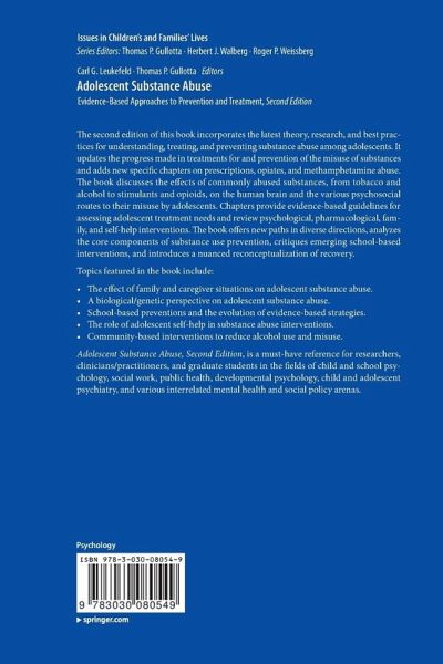 Adolescent Substance Abuse, Second Edition, is a must-have reference for researchers, clinicians/practitioners, and graduate students in the fields of child and school psychology, social work, public health, developmental psychology, child and adolescent psychiatry, and various interrelated mental health and social policy arenas.