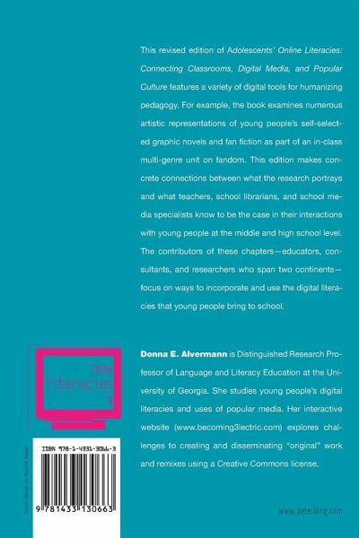 Contents: Donna E. Alvermann: Introduction - Danielle Filipiak: Connect(Ed) Learning: Fostering Digital Social Imagination Within a Humanizing Educational Framework - Lalitha Vasudevan/Tiffany DeJaynes/Stephanie Schmier: Multimodal Pedagogies: Playing, Teaching, and Learning with Adolescents' Digital Literacies - Stergios Botzakis/Jason DeHart: The Literacy Practices of an Adolescent Webcomics Creator - David E. Kirkland: 4 Colored Girls Who Considered Suicide/When Social Networking was Enuf: A Black Feminist Perspective on Literacy Online - Rachel Kaminski Sanders: Fandom: Exploring Adolescent Pop Culture through Multiple Literacies - Theresa Rogers/Kari-Lynn Winters: Textual Play, Satire, and Counter Discourses of Street Youth Zining Practices - Jairus Joaquin: Digital Literacies and Hip Hop Texts: The Potential for Pedagogy - Michael Dezuanni: Digital Media Literacy: Connecting Young People's Identities, Creative Production, and Learning about Video Games - Amanda Gutierrez/Catherine Beavis: 'Experts on the Field': Redefining Literacy Boundaries - Kelly Chandler-Olcott and Elizabeth Lewis: «I Think They're Being Wired Differently»: Secondary Teachers' Cultural Models of Adolescents and Their Online Literacies - Margaret Carmody Hagood: Afterword.