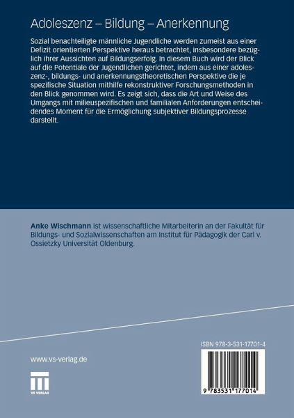 Sozial benachteiligte männliche Jugendliche werden zumeist aus einer Defizit orientierten Perspektive heraus betrachtet, insbesondere bezüglich ihrer Aussichten auf Bildungserfolg. In diesem Buch wird der Blick auf die Potentiale der Jugendlichen gerichtet, indem aus einer adoleszenz-, bildungs- und anerkennungstheoretischen Perspektive die je spezifische Situation mithilfe rekonstruktiver Forschungsmethoden in den Blick genommen wird. Es zeigt sich, dass die Art und Weise des Umgangs mit milieuspezifischen und familialen Anforderungen entscheidendes Moment für die Ermöglichung subjektiver Bildungsprozesse darstellt.