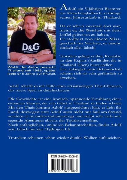 Adolf, ein 51jähriger Beamter aus Mönchengladbach, verbringt seinen Jahresurlaub in Thailand. Da er schon zweimal dort gewesen ist, meint er, die Weisheit mit dem Löffel gefressen zu haben. Er stolpert von einem Missgeschick ins nächste, er macht einfach alles falsch! Trotzdem gelingt es ihm, Kontakte zu den Expats (Ausländer, die in Thailand leben) herzustellen. Eine anfänglich nette Bekanntschaft scheint sich als sehr gefährlich zu erweisen. Adolf gelingt es, mit Hilfe eines ortsansässigen Thai-Chinesen, das miese Spiel zu durchschauen. Die Geschichte ist eine ironisch, spannende Erzählung…mehr