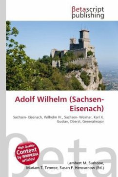 High Quality Content by WIKIPEDIA articles! High Quality Content by WIKIPEDIA articles! Adolf Wilhelm ( 15. Mai 1632 in Weimar; 21. November 1668 in Eisenach) war Herzog von Sachsen-Eisenach. Er war der Sohn von Herzog Wilhelm IV. von Sachsen-Weimar und seiner Frau Eleonore Sophia, geborene Fürstin von Anhalt. Schon in seinem neunzehnten Lebensjahr bereiste er fremde Länder, namentlich Frankreich, dann nahm er im Jahr 1656 bei dem König Karl Gustav von Schweden, der damals gegen Polen Krieg führte, Kriegsdienste als Oberst, und zeichnete sich durch Mut und Tapferkeit aus. Er geriet aber bei einem Treffen auf Fühnen in kaiserliche Gefangenschaft, aus welcher er durch Auswechslung gegen einen kaiserlichen Oberst befreit wurde. Als er im Jahr 1661 wieder nach Schweden gereist war, verlieh ihm der König Karl Gustav die Stelle eines Generalmajors der Infanterie mit einem Gehalt von 2000 Talern.