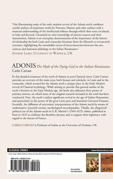 In this detailed treatment of the myth of Adonis in post-Classical times, Carlo Caruso provides an overview of the main texts, both literary and scholarly, in Latin and in the vernacular, which secured for the Adonis myth a unique place in the Early Modern revival of Classical mythology. While aiming to provide this general outline of the myth's fortunes in the Early Modern age, the book also addresses three points of primary interest, on which most of the original research included in the work has been conducted. First, the myth's earliest significant revival in the age of Italian Humanism, and particularly in the poetry of the great Latin poet and humanist Giovanni Pontano. Secondly, the diffusion of syncretistic interpretations of the Adonis myth by means of authoritative sixteenth-century mythological encyclopaedias. Thirdly, the allegorical/political use of the Adonis myth in G.B. Marino's (1569-1625) Adone, published in Paris in 1623 to celebrate the Bourbon dynasty and to support their legitimacy with regard to the throne of France.