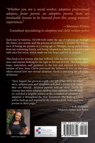 "Whether you are a social worker, adoption professional, adoptee, foster parent, an adoptive parent, there are invaluable lessons to be learned from this young woman's experiences." -Maureen Flatley Consultant specializing in adoption and child welfare policy Each year in America, 535,000 kids under the age of eighteen go through the foster care system and the process of adoption. I recount my experience of losing my parents at a young age in Ethiopia, being pulled away from my remaining family, and being adopted to a family in America not only once but twice, which made me lose hope and live in despair. This book is for anyone who has suffered, who has felt inescapable darkness, and anyone looking for the light at the end of it all. This book offers hope, restoration, and guidance to the lost and rejected by a broken version of love. Jesus Christ portrayed the fullness of love on the cross where eternal love met eternal adoption. Earth is imitating the adoption of heaven!