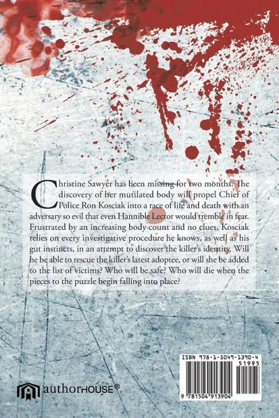 Christine Sawyer has been missing for two months. The discovery of her mutilated body will propel Chief of Police Ron Kosciak into a race of life and death with an adversary so evil that even Hannible Lector would tremble in fear. Frustrated by an increasing body count and no clues, Kosciak relies on every investigative procedure he knows, as well as his gut instincts, in an attempt to discover the killer's identity. Will he be able to rescue the killer's latest adoptee, or will she be added to the list of victims? Who will be safe? Who will die when the pieces to the puzzle begin falling into place?