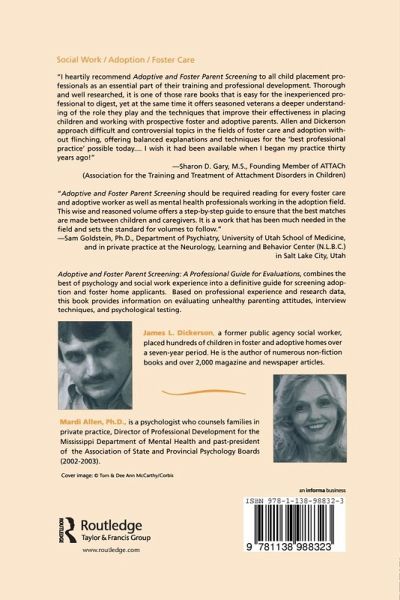 Clinical psychologist Mardi Allen and James Dickerson, a former social worker who has placed hundreds of children into adoptive and foster homes, have combined the best of psychology and social work experience into a definitive guide for screening adoption and foster home applicants.