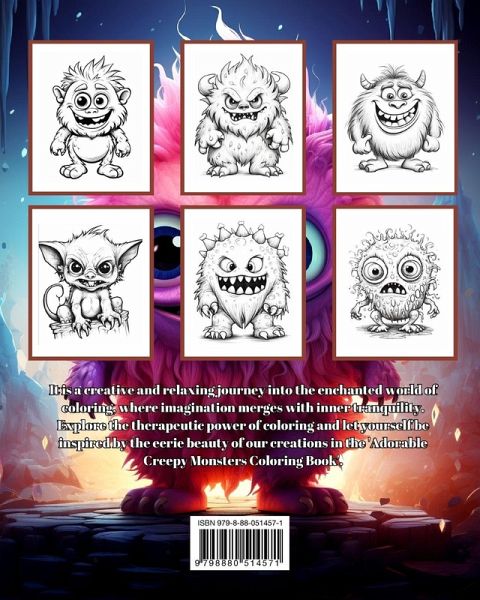 Embark on a delightful adventure with the 'Adorable Creepy Monsters Coloring Book for Kids' - a magical world filled with imaginative fun and creative exploration for young and teen artists alike. Within the pages of this charming book, a plethora of funny, silly, and utterly cute mini monsters, along with charming little fantasy creatures, await your child's artistic touch. These endearing characters make perfect companions for children seeking engaging and relaxing artistic activities. Featuring a variety of captivating coloring pages, this book provides hours of stress relief and anxiety reduction for kids and teens. It serves as a meditative escape into the realm of creativity while nurturing a sense of calm. Whether your young artist is a coloring enthusiast or just starting their creative journey, this book is thoughtfully designed to ignite their imagination and offer moments of tranquility. The 'Adorable Creepy Monsters Coloring Book for Kids' is the ideal companion for creative minds of all ages, creating a perfect blend of fun and relaxation. Welcome to a world where creativity knows no bounds!
