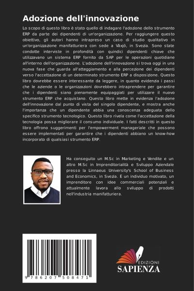 Lo scopo di questo libro è stato quello di indagare l'adozione dello strumento ERP da parte dei dipendenti di un'organizzazione. Per raggiungere questo obiettivo, gli autori hanno intrapreso un caso di studio qualitativo in un'organizzazione manifatturiera con sede a Växjö, in Svezia. Sono state condotte interviste in profondità con quindici dipendenti chiave che utilizzavano un sistema ERP fornito da SAP per le operazioni quotidiane all'interno dell'organizzazione. L'adozione dell'innovazione si trova oggi in una nuova fase che guarda all'atteggiamento e alla percezione dei dipendenti verso l'accettazione di un determinato strumento ERP a disposizione. Questo libro dovrebbe essere interessante da leggere, in quanto evidenzia i passi che le aziende o le organizzazioni dovrebbero intraprendere per garantire che i dipendenti siano pienamente equipaggiati per utilizzare il nuovo strumento ERP che acquistano. Questo libro mette in evidenza l'adozione dell'innovazione dal punto di vista del singolo dipendente, e mostra anche l'importanza che un dipendente abbia una conoscenza adeguata dello specifico strumento tecnologico. Questo libro rivela come l'accettazione della tecnologia possa migliorare il consumo individuale. I fatti descritti in questo libro offrono suggerimenti per l'empowerment manageriale che possono essere implementati per garantire che i dipendenti abbiano un know-how incorporato di qualsiasi strumento ERP.