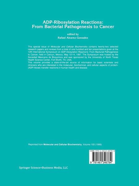 This special issue of Molecular and Cellular Biochemistry contains twenty-two selected research papers and reviews from a total of one hundred and ten presentations given at the 12th International Symposium on ADP-ribosylation Reactions: From Bacterial Pathogenesis to Cancer, held in Cancun, Mexico, May 10-14, 1997. The Symposium was hosted by the Sociedad Mexicana de Bioquimica and was sponsored by the University of North Texas Health Science Center, Fort Worth, TX, USA. This volume provides a state-of-the-art source of information for basic scientists and clinicians who are interested in the molecular, biochemical, and cellular aspects of protein-(ADP-ribose) transfer reactions in human health and disease.