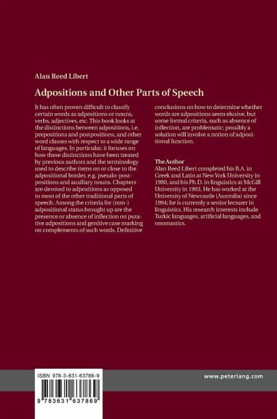 It has often proven difficult to classify certain words as adpositions or nouns, verbs, adjectives, etc. This book looks at the distinctions between adpositions, i.e. prepositions and postpositions, and other word classes with respect to a wide range of languages. In particular, it focuses on how these distinctions have been treated by previous authors and the terminology used to describe items on or close to the adpositional border, e.g. pseudo-postpositions and auxiliary nouns. Chapters are devoted to adpositions as opposed to most of the other traditional parts of speech. Among the criteria for (non-)adpositional status brought up are the presence or absence of inflection on putative adpositions and genitive case marking on complements of such words. Definitive conclusions on how to determine whether words are adpositions seem elusive, but some formal criteria, such as absence of inflection, are problematic; possibly a solution will involve a notion of adpositional function.