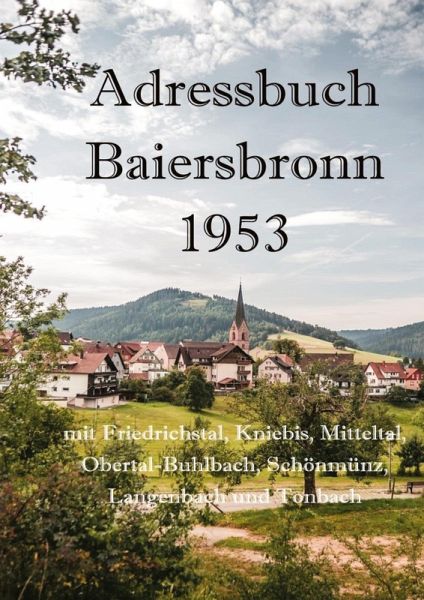 Es handelt sich hier um einen Nachdruck des Adressbuches von 1953. Zu finden sind Namen, Adressen, Straßen und Parzellen der damaligen Bewohner der Altgemeinde baiersbronn