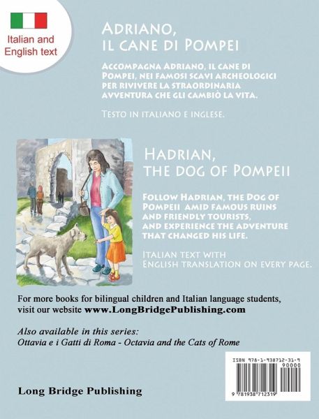 A delightful story of a special dog and the magical place he calls home. Follow Hadrian the Dog of Pompeii amid famous ruins and friendly tourists, and experience the adventure that changed his life. Discover more about Pompeii in the historical sections of the book and the location map. Suitable for all children with a love of animals, and for parents and educators seeking an entertaining way to introduce the subjects of travel, history, archeology, and geography. The Italian text followed by the English translation on every page make the book a fun tool for language students and teachers as well. Fully illustrated. Large print. Ages: 3+