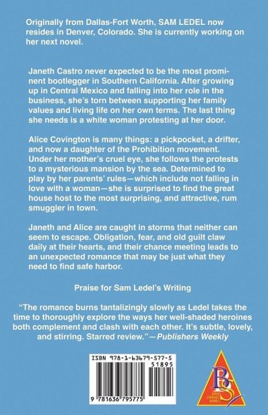Janeth Castro never expected to be the most prominent bootlegger in Southern California. After growing up in Central Mexico and falling into her role in the business, she's torn between supporting her family values and living life on her own terms. The last thing she needs is a white woman protesting at her door. Alice Covington is many things: a pickpocket, a drifter, and now a daughter of the Prohibition movement. Under her mother's cruel eye, she follows the protests to a mysterious mansion by the sea. Determined to play by her parents' rules--which include not falling in love with a woman--she is surprised to find the great house host to the most surprising, and attractive, rum smuggler in town. Janeth and Alice are caught in storms that neither can seem to escape. Obligation, fear, and old guilt claw daily at their hearts, and their chance meeting leads to an unexpected romance that may be just what they need to find safe harbor.