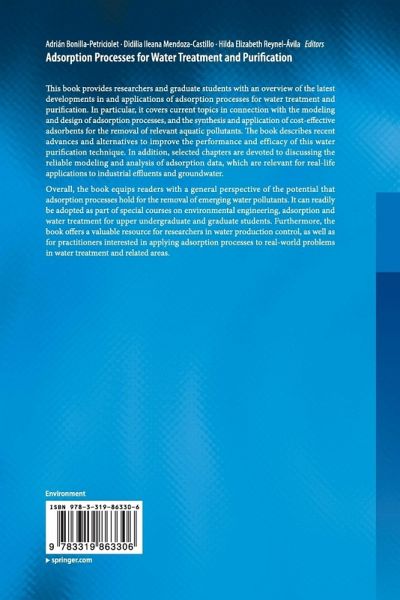 This book provides researchers and graduate students with an overview of the latest developments in and applications of adsorption processes for water treatment and purification. In particular, it covers current topics in connection with the modeling and design of adsorption processes, and the synthesis and application of cost-effective adsorbents for the removal of relevant aquatic pollutants. The book describes recent advances and alternatives to improve the performance and efficacy of this water purification technique. In addition, selected chapters are devoted to discussing the reliable…mehr