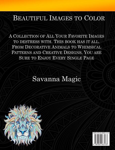30 Gorgeous Designs to Color! Not Sure What Theme To Start Coloring? Grab One That Has Everything. Incredible Artwork With the Largest Variety of Animals, Mandalas and Paisley Designs. Join the hundreds of thousands of happy colorists that really appreciate good quality artwork.Various Levels Of Intricacy Keeping You Excited and Inspired To Color! So Many Different Themes To Choose From: Garden Designs, Animals, Mandalas, and Paisley Patterns, Decorative Art. Perfect For Every Skill Level: Great For Growing Your Skills. Perfect With Your Choice Of Coloring Tools (Crayon, Gel Pens, Markers, Colored Pencils). High Resolution Crisp Clean Printing Of Illustrations. Each Coloring Page Is On One Sheet. Printed One Sided. Don't Worry About Bleed Through. Frequently Gifted. This Book Makes The Perfect Gift For Christmas Holidays, Birthday and More. Grab a Set of Pencils To Go With It! Create Your Own Frame-Worthy Masterpieces! Savanna Magic Creates Awesome Coloring Books that help you create your own magic!