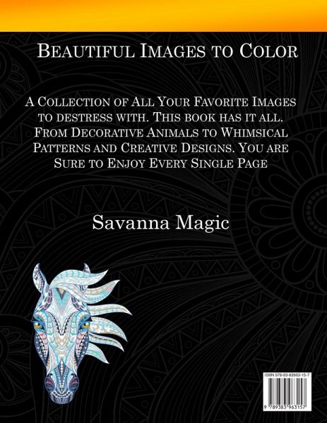 30 Gorgeous Designs to Color! Not Sure What Theme To Start Coloring? Grab One That Has Everything. Incredible Artwork With the Largest Variety of Animals, Mandalas and Paisley Designs. Join the hundreds of thousands of happy colorists that really appreciate good quality artwork.Various Levels Of Intricacy Keeping You Excited and Inspired To Color! So Many Different Themes To Choose From: Garden Designs, Animals, Mandalas, and Paisley Patterns, Decorative Art. Perfect For Every Skill Level: Great For Growing Your Skills. Perfect With Your Choice Of Coloring Tools (Crayon, Gel Pens, Markers, Colored Pencils). High Resolution Crisp Clean Printing Of Illustrations. Each Coloring Page Is On One Sheet. Printed One Sided. Don't Worry About Bleed Through. Frequently Gifted. This Book Makes The Perfect Gift For Christmas Holidays, Birthday and More. Grab a Set of Pencils To Go With It! Create Your Own Frame-Worthy Masterpieces! Savanna Magic Creates Awesome Coloring Books that help you create your own magic!
