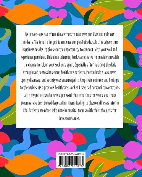 As adults, we often allow stress to take over our lives and ruin our mindsets. We tend to forget to embrace our playful side. Which is where true happiness resides. It gives you the opportunity to connect with your soul and experience pure love. This adult colouring book was created to provide you with the chance to colour your soul once again.