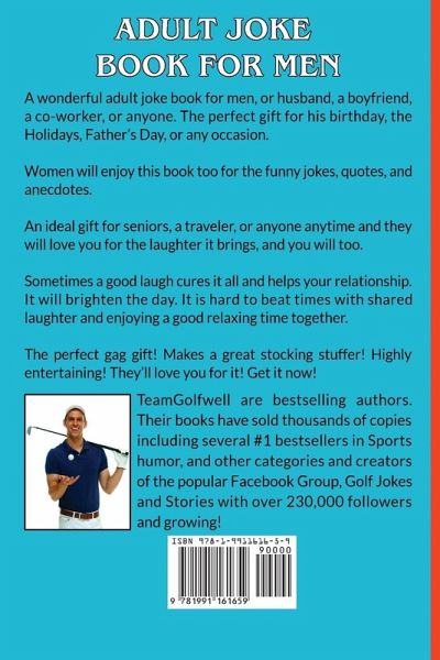 A perfect gift he'll enjoy! Hilarious jokes and stories he can share with friends, keep on the nightstand, or read any time. He'll love you for the laughs and sometimes a good laugh cures everything! It's the perfect gift for the man in your life, a friend, co-worker, or anyone. Makes a great gift for the Holidays, birthdays, Father's Day, or any occasion. Over 300 pages An ideal gift for seniors, a traveler, or anyone Keep this book on the nightstand, read while traveling, a great beach read, or anytime. Great to share a laugh with friends. Has an alphabetical list of topics to help find the right story for the right audience or an event. Makes the perfect gag gift! Highly entertaining and he'll remember you for the laughs it brings! It's funny! Order it now!