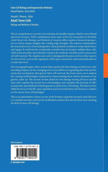 "The three parts that makes up this volume, the first dealing with the basic biology, the second with the characterization of the adult stem cells phenotype and the third with the regulation of the life span of these cells, are all targeted to the critical evaluation of the techniques we use to distinguish adult stem cell-renewal from cell survival. ... The volume is well written and well illustrated ... . Well done!" (Carlo Alberto Redi, European Journal of Histochemistry, Vol. 55, 2011)