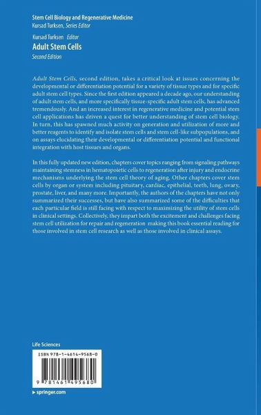 Adult Stem Cells, second edition, takes a critical look at issues concerning the developmental or differentiation potential for a variety of tissue types and for specific adult stem cell types. Since the first edition appeared a decade ago, our understanding of adult stem cells, and more specifically tissue-specific adult stem cells, has advanced tremendously. And an increased interest in regenerative medicine and potential stem cell applications has driven a quest for better understanding of stem cell biology. In turn, this has spawned much activity on generation and utilization of more and better reagents to identify and isolate stem cells and stem cell-like subpopulations, and on assays elucidating their developmental or differentiation potential and functional integration with host tissues and organs.