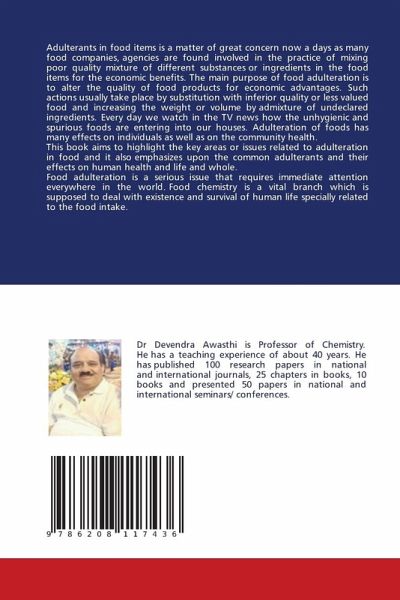 Adulterants in food items is a matter of great concern now a days as many food companies, agencies are found involved in the practice of mixing poor quality mixture of different substances or ingredients in the food items for the economic benefits. The main purpose of food adulteration is to alter the quality of food products for economic advantages. Such actions usually take place by substitution with inferior quality or less valued food and increasing the weight or volume by admixture of undeclared ingredients. Every day we watch in the TV news how the unhygienic and spurious foods are entering into our houses. Adulteration of foods has many effects on individuals as well as on the community health.This book aims to highlight the key areas or issues related to adulteration in food and it also emphasizes upon the common adulterants and their effects on human health and life and whole.Food adulteration is a serious issue that requires immediate attention everywhere in the world. Food chemistry is a vital branch which is supposed to deal with existence and survival of human life specially related to the food intake.