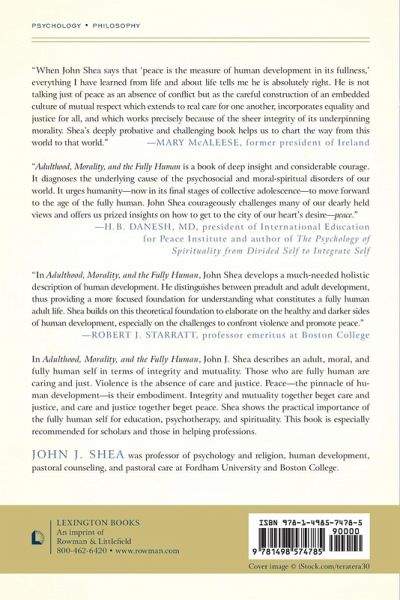 In Adulthood, Morality, and the Fully Human, John J. Shea describes an adult, moral, and fully human self in terms of integrity and mutuality. Those who are fully human are caring and just. Violence is the absence of care and justice. Peace-the pinnacle of human development-is their embodiment. Integrity and mutuality together beget care and justice and care and justice together beget peace. Shea shows the practical importance of the fully human self for education, psychotherapy, and spirituality. This book is especially recommended for scholars and those in helping professions.