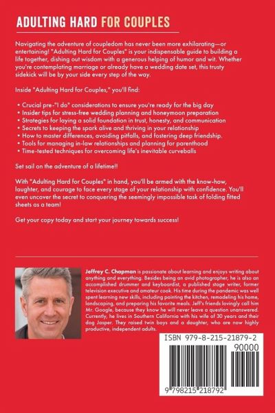 Navigating the adventure of coupledom has never been more exhilarating-or entertaining! "Adulting Hard for Couples" is your indispensable guide to building a life together, dishing out wisdom with a generous helping of humor and wit. Whether you're contemplating marriage or already have a wedding date set, this trusty sidekick will be by your side every step of the way. Inside "Adulting Hard for Couples," you'll find: •Crucial pre-"I do" considerations to ensure you're ready for the big day •Insider tips for stress-free wedding planning and honeymoon preparation •Strategies for laying a solid foundation in trust, honesty, and communication •Secrets to keeping the spark alive and thriving in your relationship •How to master differences, avoiding pitfalls, and fostering deep friendship. •Tools for managing in-law relationships and planning for parenthood •Time-tested techniques for overcoming life's inevitable curveballs Set sail on the adventure of a lifetime!! With "Adulting Hard for Couples" in hand, you'll be armed with the know-how, laughter, and courage to face every stage of your relationship with confidence. You'll even uncover the secret to conquering the seemingly impossible task of folding fitted sheets as a team! Get your copy today and start your journey towards success!