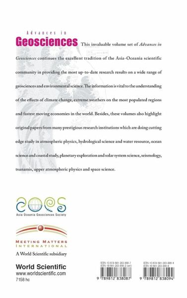 This invaluable volume set of Advances in Geosciences continues the excellent tradition of the Asia-Oceania scientific community in providing the most up-to-date research results on a wide range of geosciences and environmental science. This information will be vital to the understanding the effects of climate change, extreme weathers on the most populated region and fastest moving economies in the world. Besides reviews, these volumes contain original papers from many prestigious research institutions which are doing cutting edge study in atmospheric physics, hydrological science and water resource, ocean science and coastal study, planetary exploration and solar system science, seismology, tsunamis, upper atmospheric physics and space science.