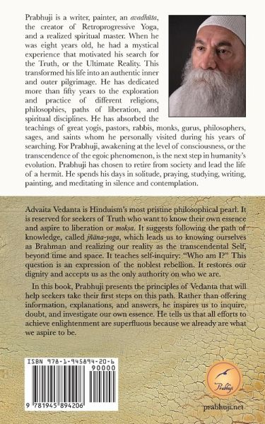 Advaita Vedanta, the philosophy of non-duality, is one of Hinduism's most brilliant pearls. It is reserved for seekers of Truth who want to know their own essence and aspire to liberation, or mok¿a. It proposes the path of knowledge called jñ¿na-yoga and its main tool is self-inquiry: "who am I?" This question is an expression of the highest and noblest spiritual rebellion. Vedanta restores our dignity and accepts us as the only authority on who we are. It says that our self-exploration might lead us to discover our own nature as the Self beyond time and space. Prabhuji presents the principles of Vedanta that will help seekers take their first steps on this path. Rather than offering explanations or answers, he inspires us to inquire, doubt, and investigate our own essence. He tells us that every effort to achieve enlightenment is superfluous because we already are what we aspire to be. We simply need to turn our attention to consciousness itself and be the Self. David, Ben Yosef, Har-Zion, who writes under the pen name Prabhuji, is an artist, writer, painter, composer, and avadh¿ta mystic. He was born in Santiago, the capital of the Republic of Chile, on March 21, 1958. When he was eight years old, he had a mystical experience that sparked his search for the Truth. Since then, he has devoted his life to deepening the early transformative experience that marked the beginning of his process of involution. For more than fifty years, he has been exploring and practicing various religions and spiritual paths. In his view, the awakening at the level of consciousness, or the transcendence of the egoic phenomenon, is the next step in humanity's evolutionary process.