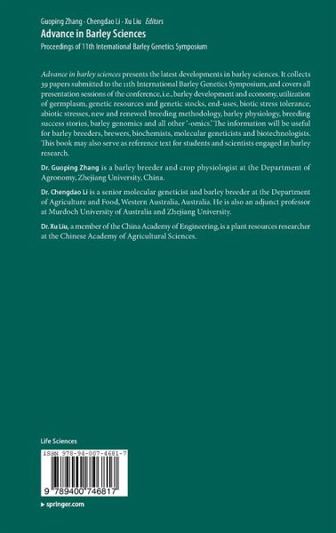 Advance in barley sciences presents the latest developments in barley sciences. It collects 39 papers submitted to the 11th International Barley Genetics Symposium, and covers all presentation sessions of the conference, i.e., barley development and economy, utilization