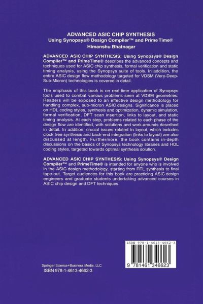 Advanced ASIC Chip Synthesis: Using Synopsys® Design Compiler® and PrimeTime® is intended for anyone who is involved in the ASIC design methodology, starting from RTL synthesis to final tape-out. Target audiences for this book are practicing ASIC design engineers and graduate students undertaking advanced courses in ASIC chip design and DFT techniques.