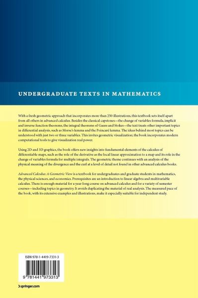 "A new geometric and visual approach to advanced calculus is presented. ... The book can be useful a textbook for beginners as well as a source of supplementary material for university teachers in calculus and analysis. ... the book meets a wide auditorium among undergraduate and graduate students in mathematics, physics, economics and in other fields which essentially use mathematical models. It is also very interesting for teachers and instructors in Calculus and Mathematical Analysis." (Sergei V. Rogosin, Zentralblatt MATH, Vol. 1205, 2011)