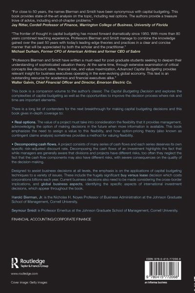 Exploring this key topic in corporate finance the authors examine the complexities of capital budgeting as well as the opportunities to improve the decision process where risk and time are important elements.