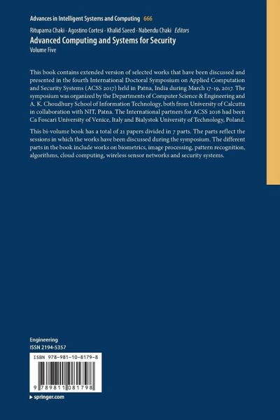This bi-volume book has a total of 21 papers divided in 7 chapters. The chapters reflect the sessions in which the works have been discussed during the symposium. The different chapters in the book include works on biometrics, image processing, pattern recognition, algorithms, cloud computing, wireless sensor networks and security systems.