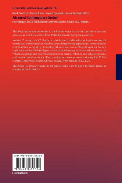 Volume 2 comprises 42 chapters, which specifically address topics connected to statistical and stochastic methods in control engineering applications, to optimization and quantum computing, to biological, medical, and ecological systems, to new applications of artificial intelligence and machine learning in automated and connected vehicles, to design and control of autonomous marine, robotics, and vehicles systems, and to other modern topics. The contributions were presented during XXI Polish Control Conference, held in Gliwice, Poland, from June 26 to 29, 2023.